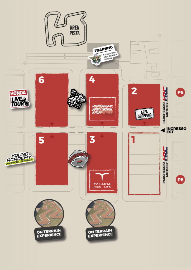 Tra pad. 3 e 5 e tra pd. 4 e 6L’unica area test di prodotto, che integra 2 e 4 ruote.